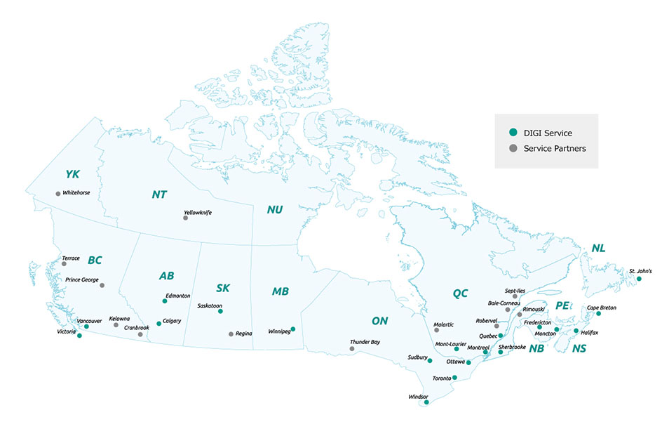 Digi Canada提供海岸到海岸覆盖范围,以满足您的需求。我们在加拿大有27个服务提供商50多个服务中心。这对小型商店非常重要,他们无法承受停机时间,并且需要能够依赖即时服务 - 即使在偏远地区也是如此。除了为客户的需求提供服务之外,这对大型杂货连锁员来说,这对大型杂货连锁店同样重要的是。